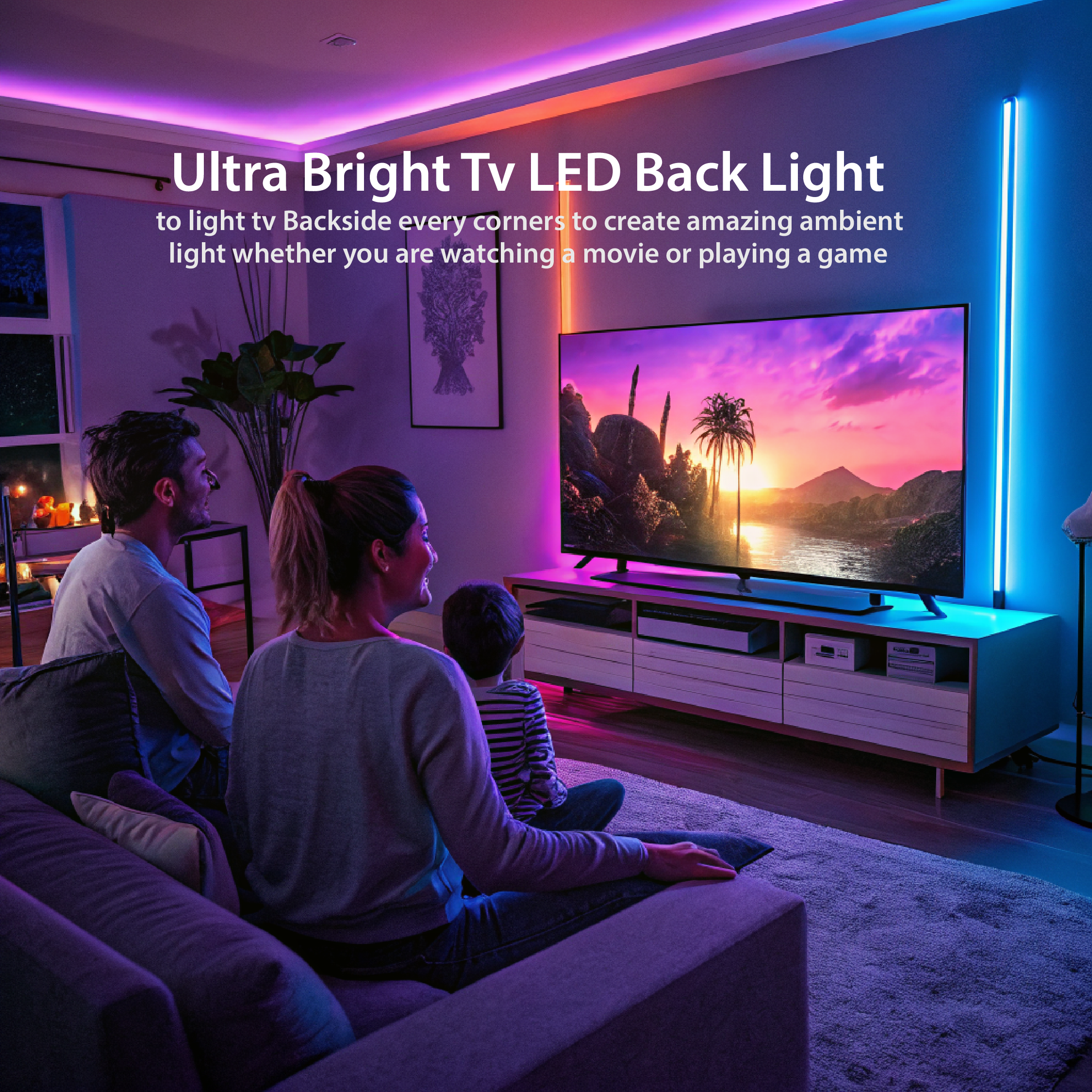 • SUITABLE FOR 32-85 INCH TV:2.4M,  2.8 M and 3.8 M TV backlights suitable for 32-85 inch TVs, along with two LED Bars connected via flexible cable.
