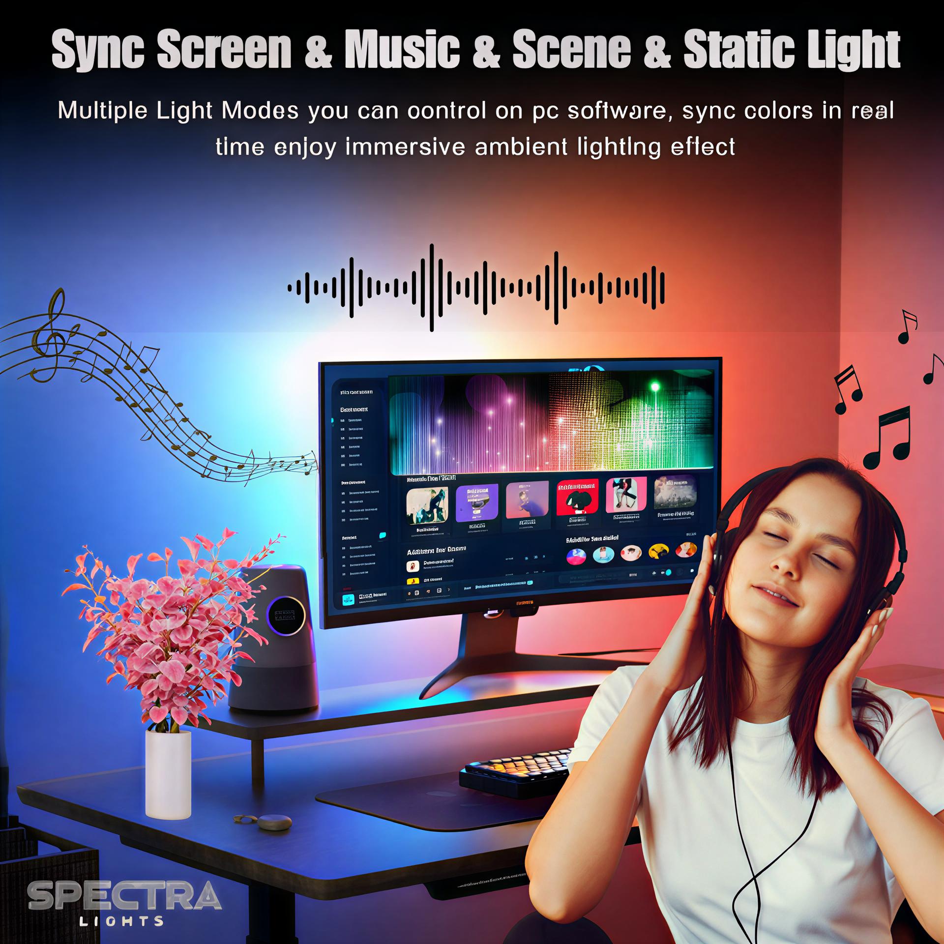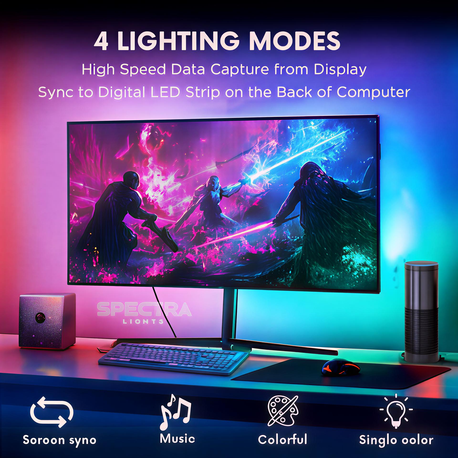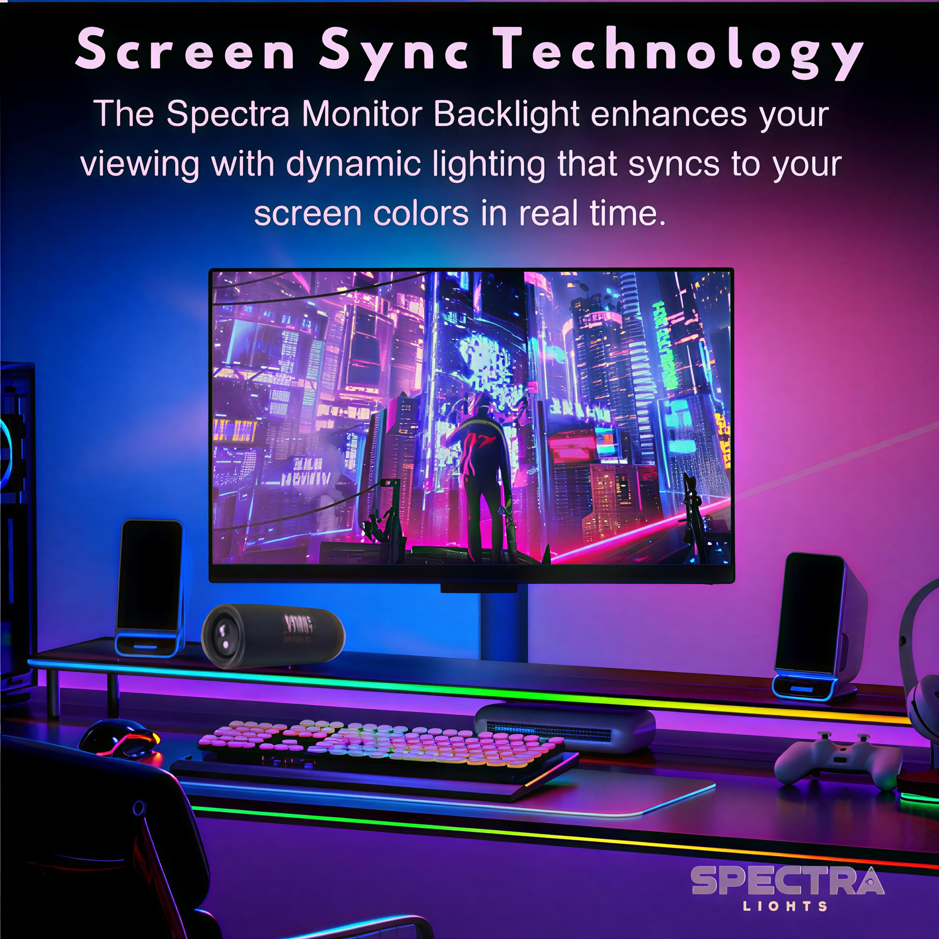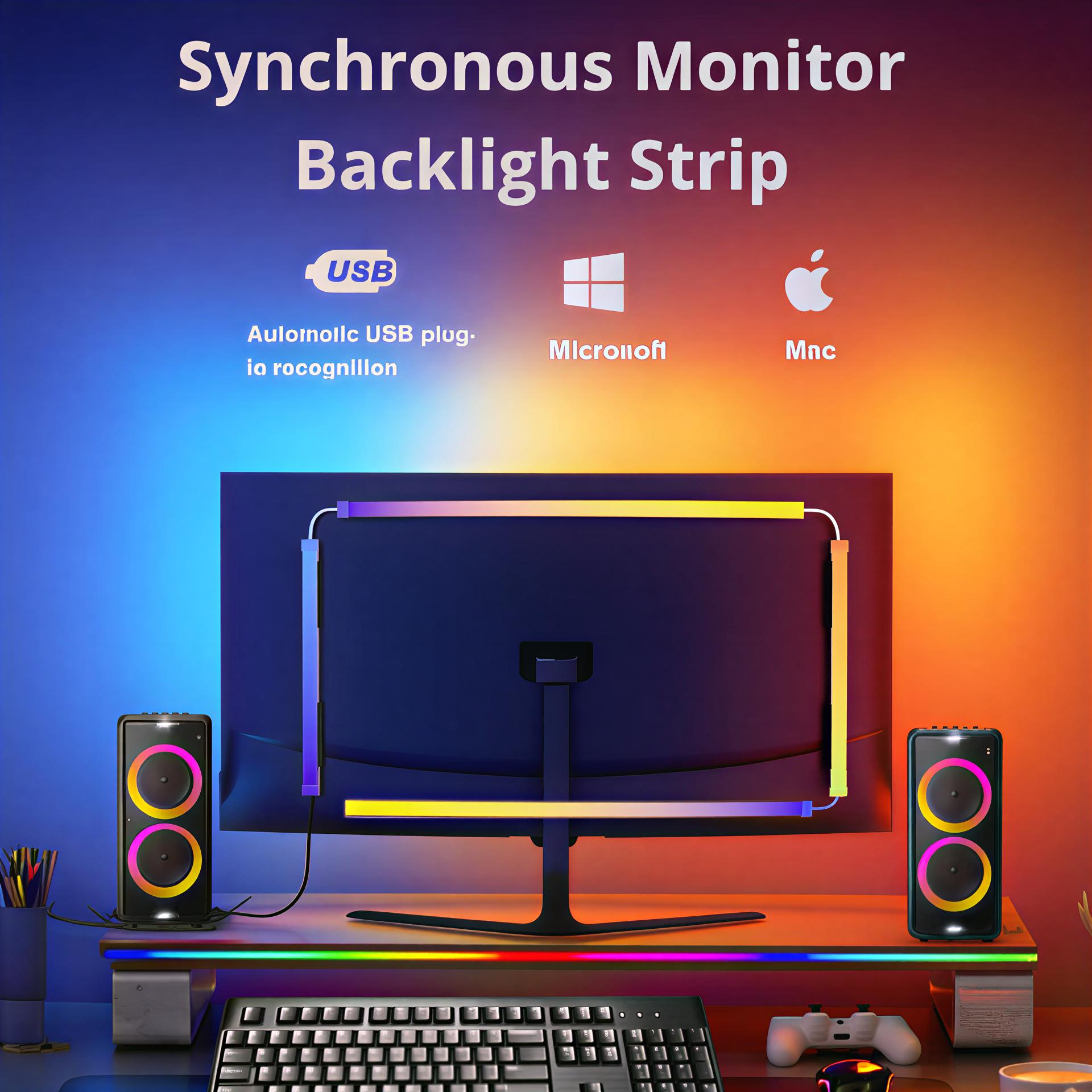 “Enhance your viewing experience with our monitor backlight sync light, featuring immersive screen sync, customizable RGB colors, and easy installation. Compatible with 24-32 inch monitors and 4K resolutions, controllable via desktop app.â€